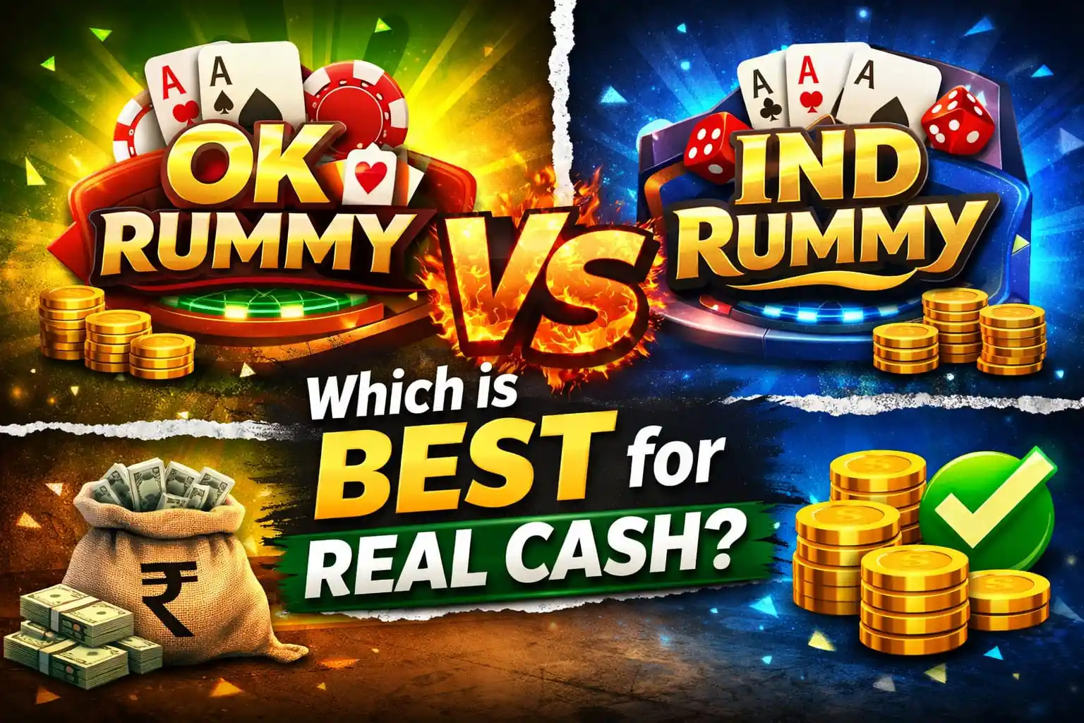 Ok Rummy vs IND Rummy full comparison. Check bonus, withdrawal, gameplay and which is best real cash earning rummy app in India 2026