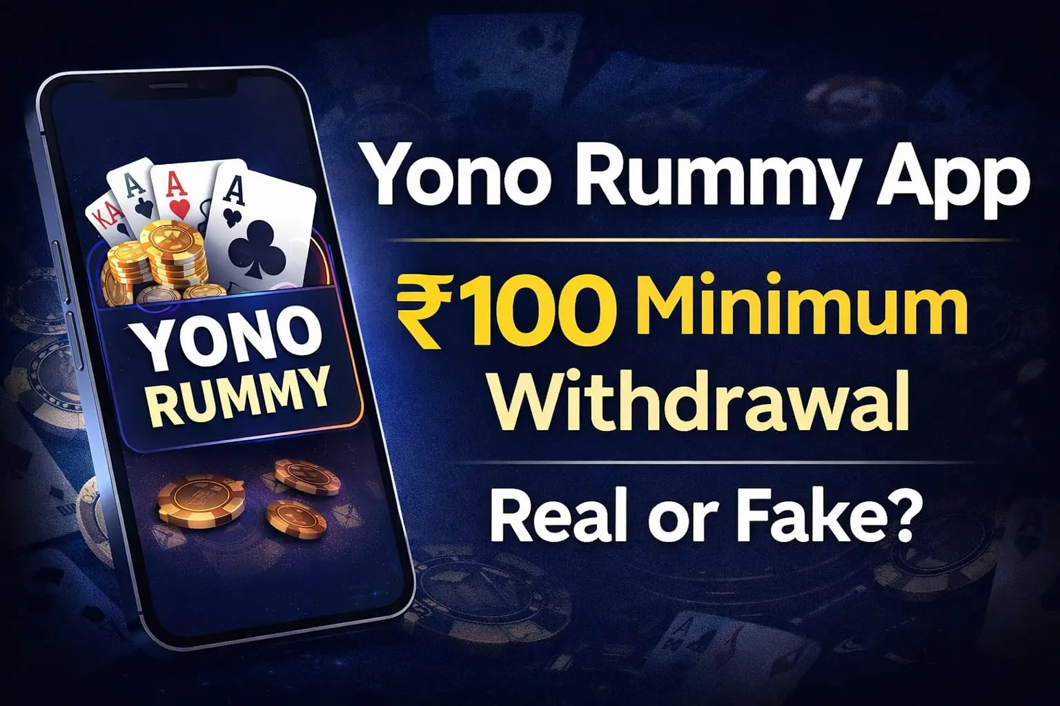 Yono Rummy App Review 2026. Signup bonus, games list, ₹100 minimum withdrawal, Paytm/UPI payout aur honest real or fake details yahan check karein